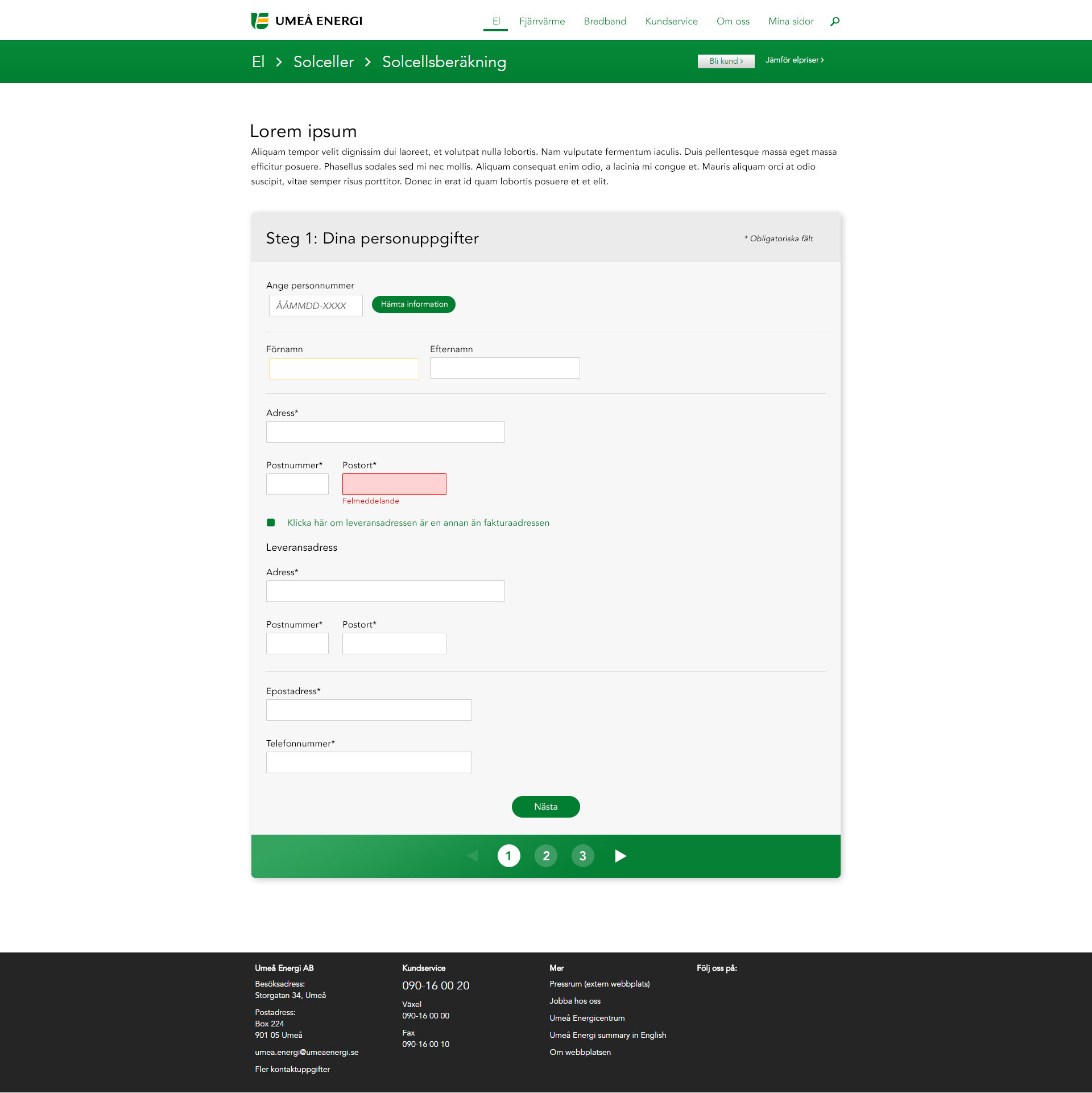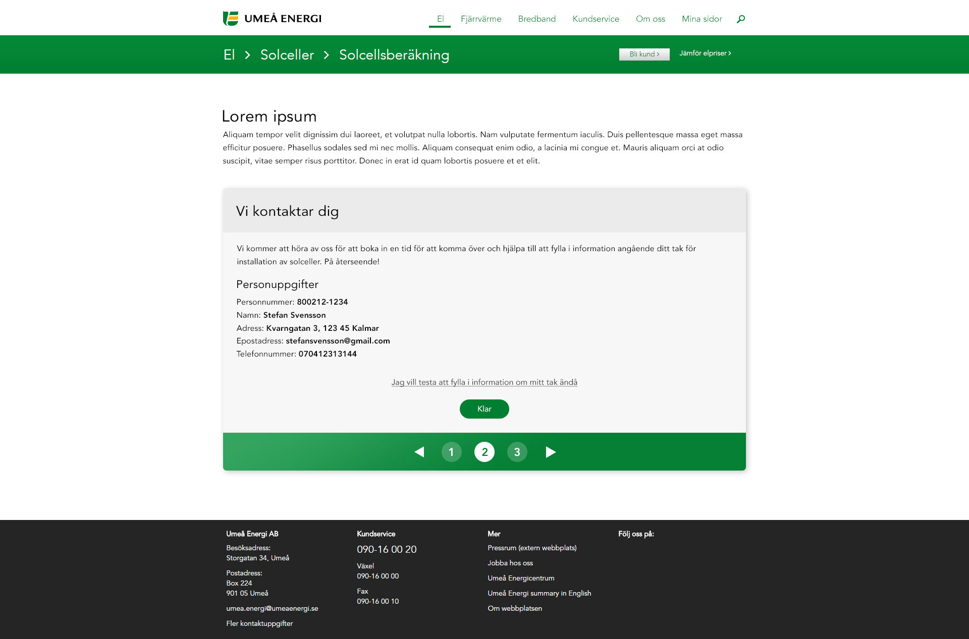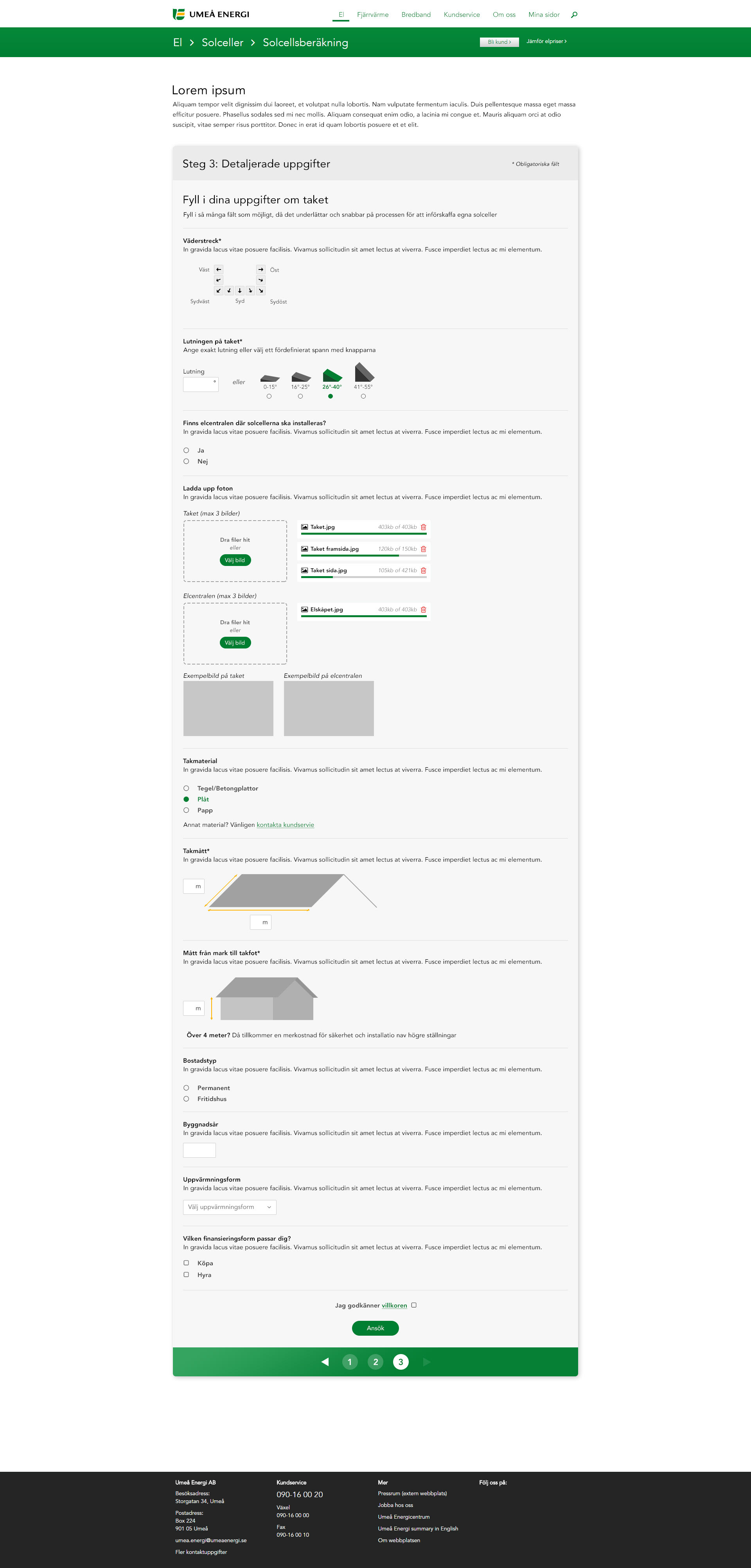En tidig mockup av hur kunder kan köpa solceller via Umeå Energi. Tjänsten är nu lanserad och vidareutvecklad, med fokus på en smidig och tydlig köpupplevelse – från prisestimering till beställning.
